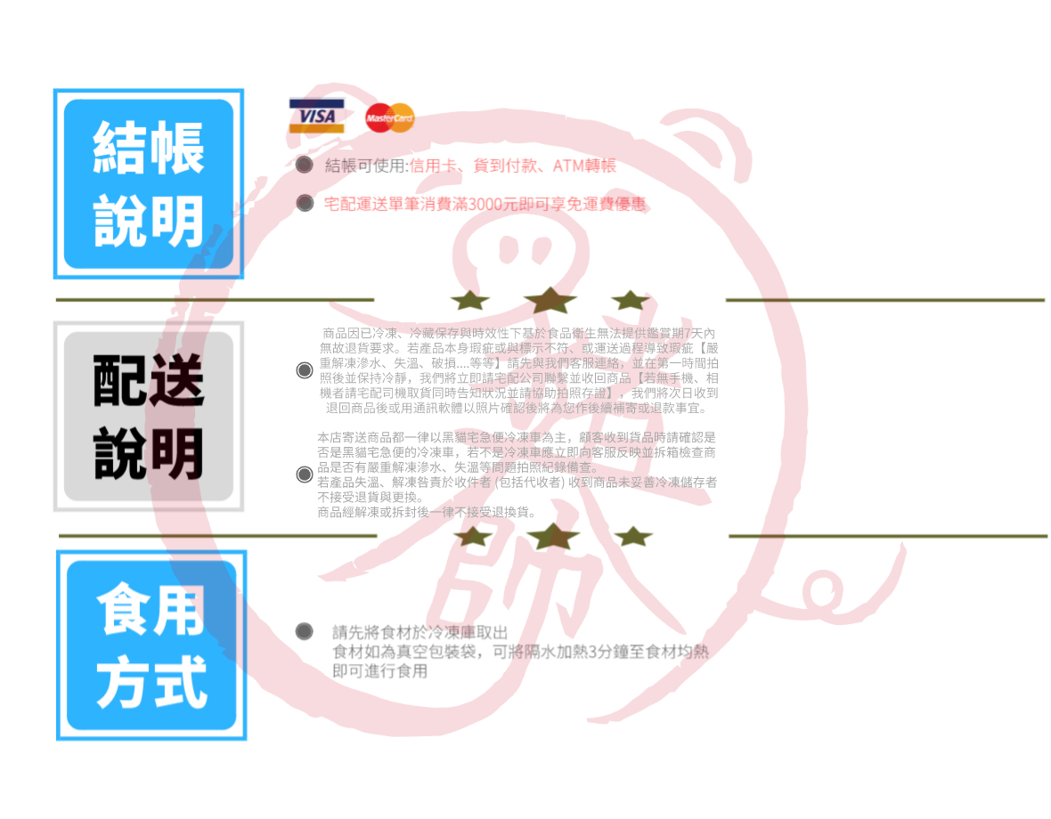 (若您的家用冰箱冷凍庫溫度未低於-18度C,建議您於收到貨一個月內食用完畢)